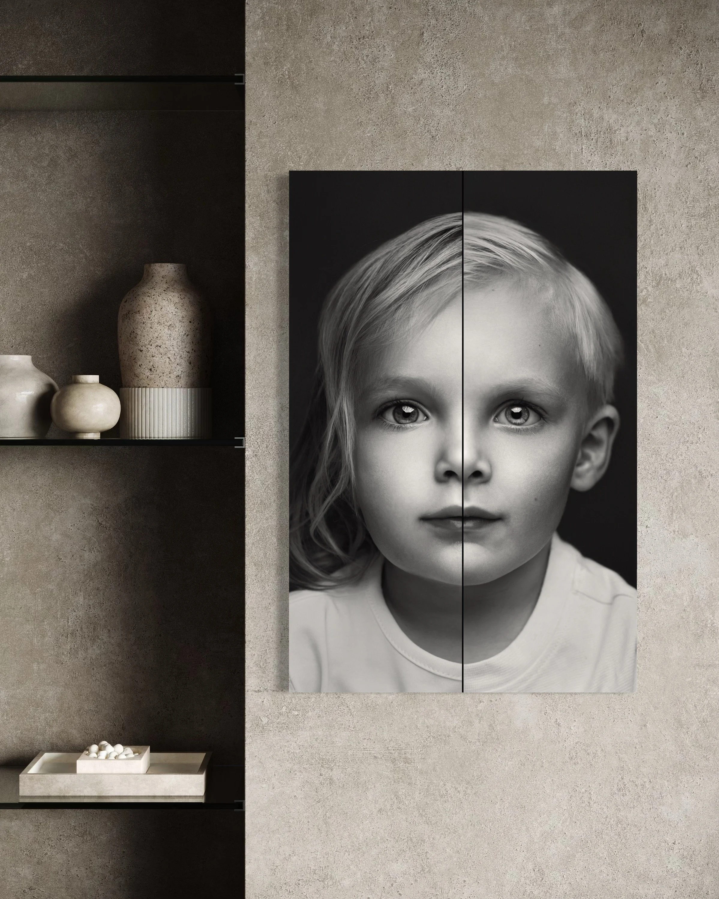 “Bij een duo-portret combineer ik twee individuele portretten tot één harmonieus beeld. Zo zie je zowel de persoonlijkheid van ieder afzonderlijk als de verbondenheid tussen jullie.”