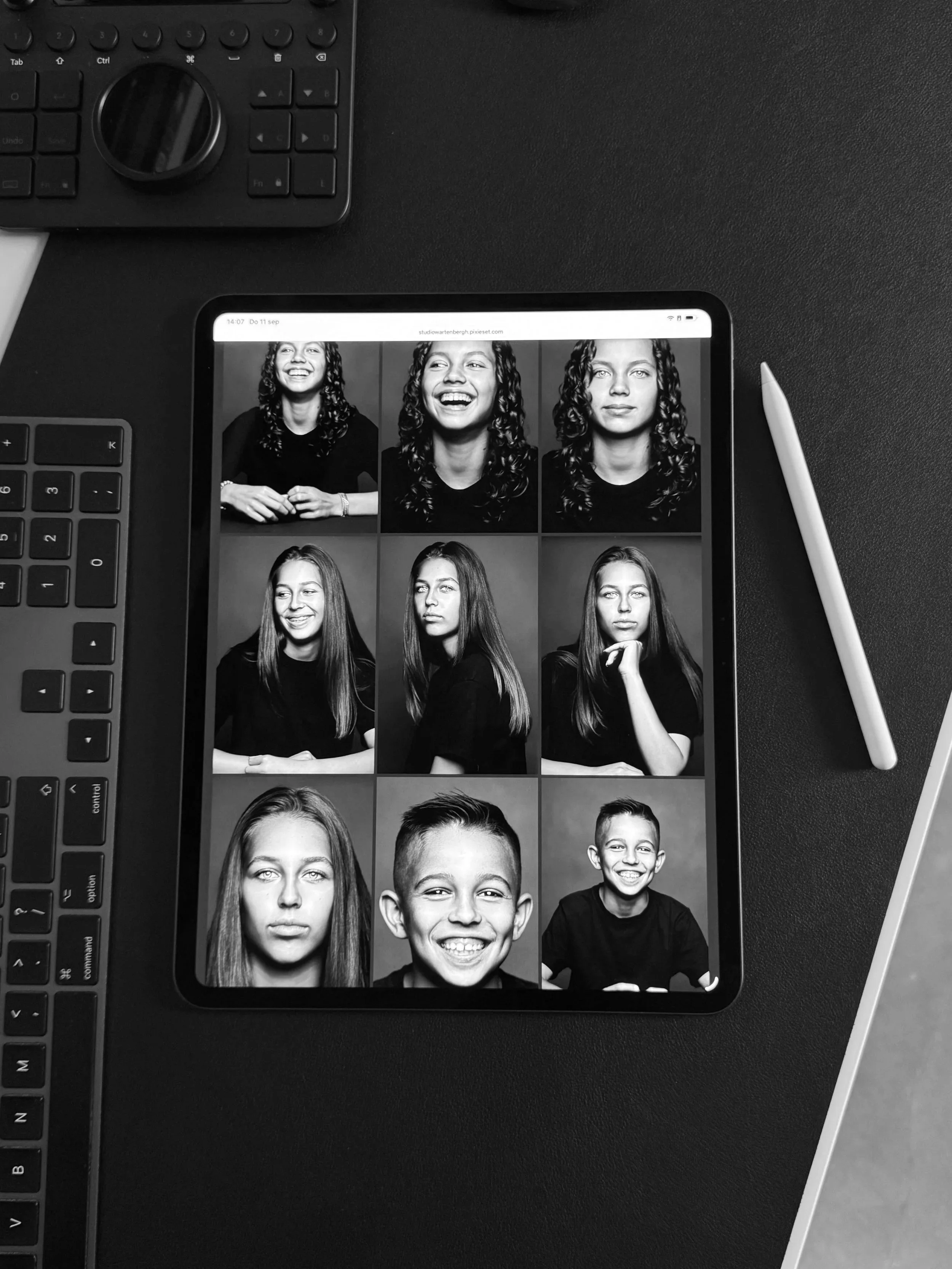‘‘Een sessie in de studio is ontspannen en persoonlijk. Het resultaat: portretten die de unieke band tussen jullie laten zien. Puur, krachtig en tijdloos.’’